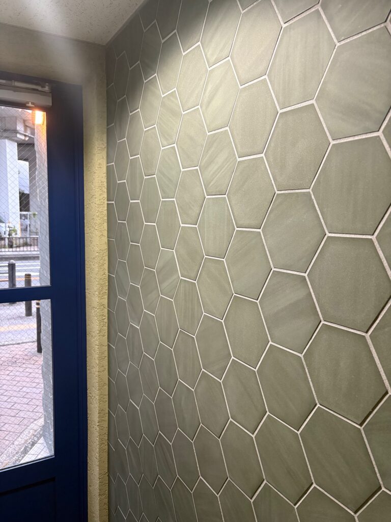 柄の雰囲気に合うようにエントランスの壁のタイルも貼り替えてみました♪